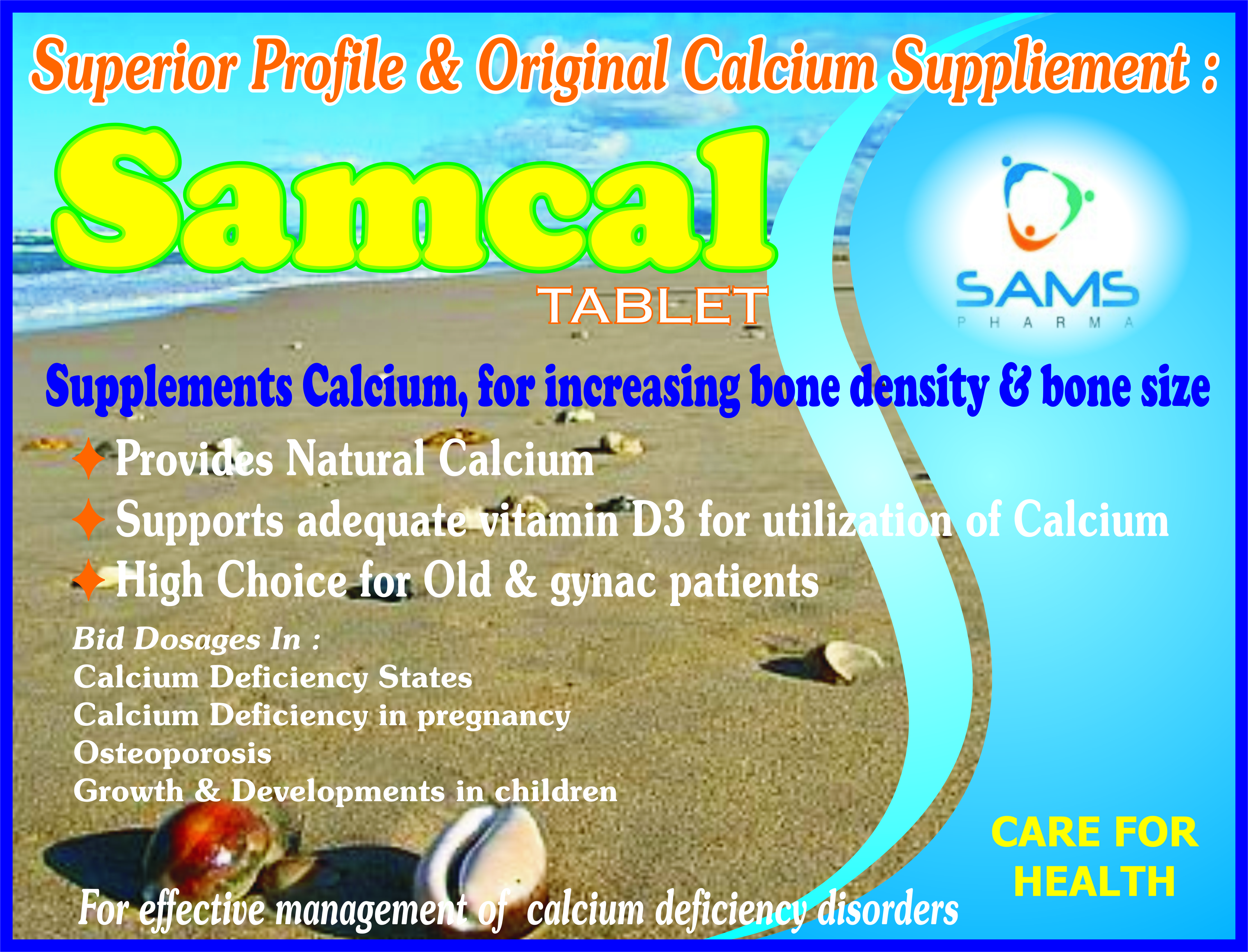 ARROCAL TAB : is a high potency calcium-magnesium supplement designed to meet the increased body requirements when diet alone fails to provide the recommended amounts of these vital minerals. For optimum absorption and utilization of both calcium and magnesium in the body, SAMCAL TABalso contains optimum amounts of vitamin D3 and zinc.