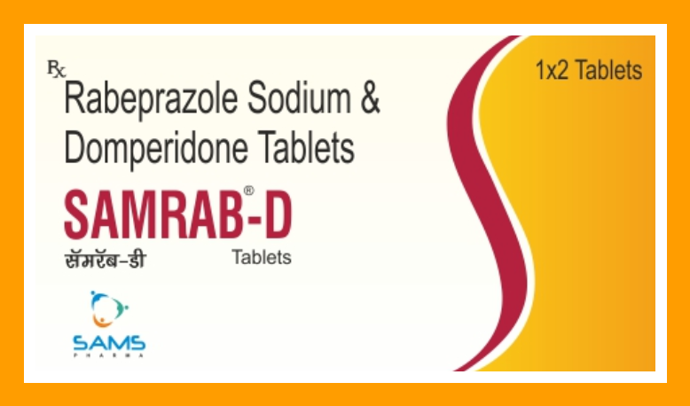 SAMRAB D Tablet Domperidone+Rabeprazole 10mg/20mg Tablet is a combination of two medicines: Domperidone and Rabeprazole. Domperidone is a prokinetic which works on the upper digestive tract to increase the movement of the stomach and intestines, allowing the food to move more easily through the stomach. Rabeprazole is a proton pump inhibitor (PPI) which works by reducing the amount of acid in the stomach which helps in the relief of acid-related indigestion and heartburn.
